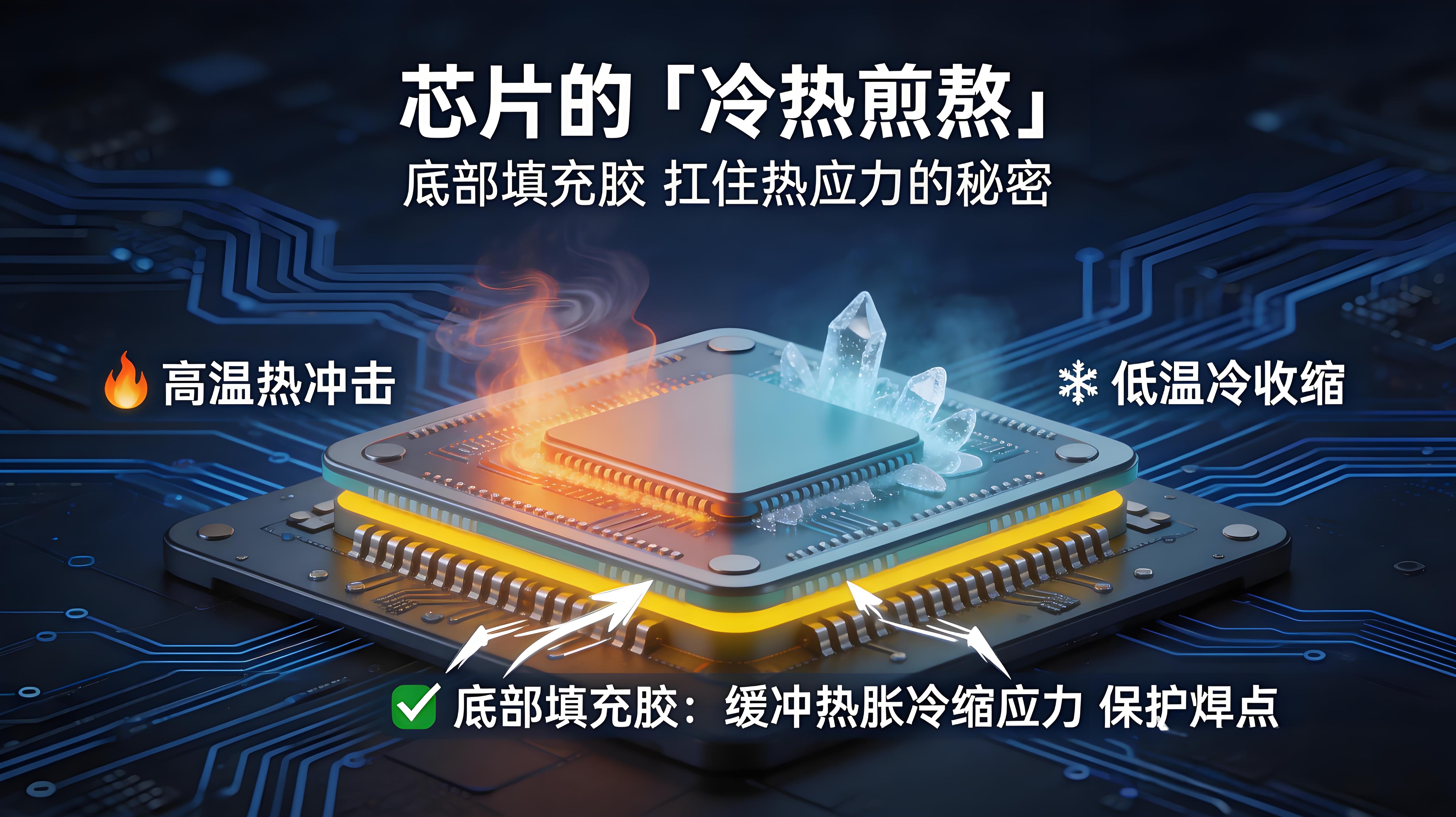 《芯片底部填充胶:彻底解决热应力与焊点开裂的终极指南》核心痛点:看不见的“热应力”正在摧毁你的产品在电子研发与生产中,75%的芯片焊点失效源于热应力冲击,消费电子与工业设备中这一比例甚至高达82%。许多产品...